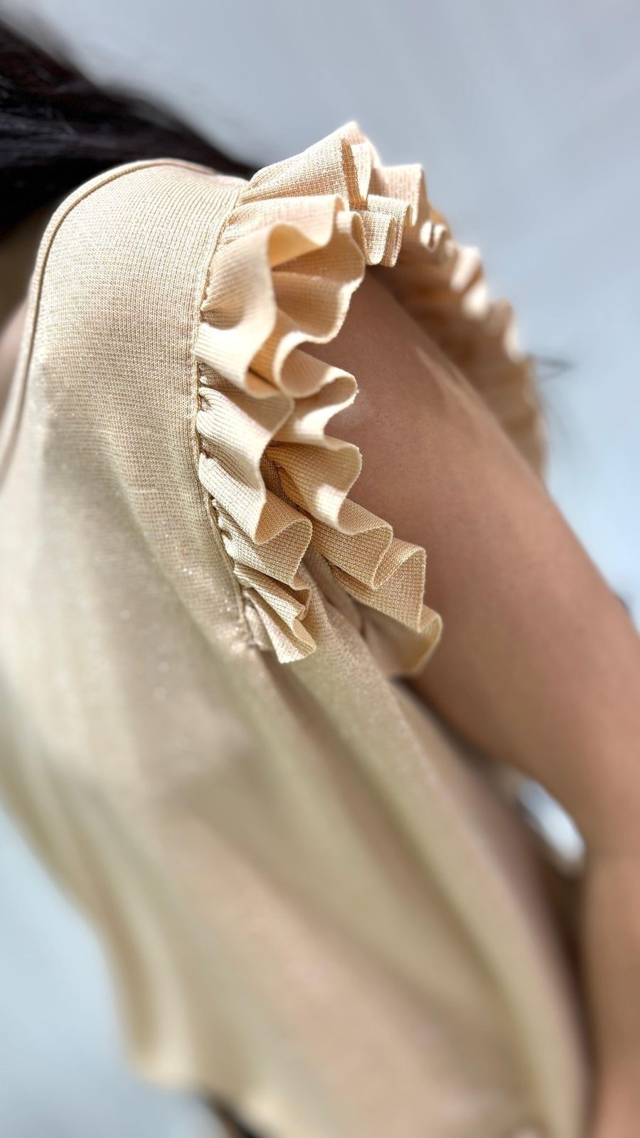 ✔️MUSCULOSA DISEÑO EXCLUSIVO DE MECHI SELIGMAN , CALIDAD PREMIUM , SU TELA ES LUREX CON DETALLE DE VOLADOS DOBLES EN LOS HOMBROS , TALLE ÚNICO ADAPTABLE HASTA UN TALLE L !